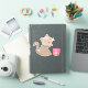 Adorable Cute cat animal cartoon with pink teacup. Pastel coloured children's design for a childrens gift or childrens decor. Grey background on some products. Cute animal theme. Adorable kitty.