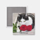 Cute cat with the red rose magnet