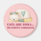 Darling cartoon cat with "Cats and Books, the Perfect Combination" slogan is perfect for any girl who loves reading and cats.
