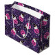 A gift bag with an adorable Halloween themed pattern. Cats in witches hats, sitting on pink pumpkins with purple cobwebs in the background.