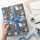 Cute Cats Botanical Floral Pattern Grey White Gift Wrapping Paper
