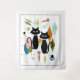 This eye-catching design showcases a playful blend of whimsical felines alongside Geometric Symbols, all painted in the nostalgic aura of Retro Colours. A harmonious blend of Green, Yellow, Blue, Orange, and Black tones. This classic yet unique design is the perfect homage to the style of mid-century modern aesthetics, marrying function and fashion. It’s not just a design, it’s a statement.