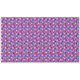 A 60” x 104” tablecloth featuring a cute, colourful pattern design of grey and teal cats against a purple violet background with multicolored polka dot accents.