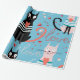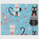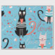 Cute cats pattern on a blue background wrapping paper
