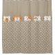 A neutral colored shower curtain with cute ginger and white cat peeping in a row.