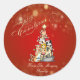 Cute Cats Pine Tree Red Christmas Classic Round Sticker