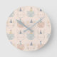 Cute Cats Rabbits and Bears Faces Pastel Pattern Round Clock