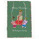 Celebrate the joy of the season with our "Cute Cats with Present Moss Green Christmas Medium Gift Bag." This charming gift bag showcases two adorable cats presenting a stack of beautifully wrapped gifts topped with a festive star, all set against a warm moss green background. The sides feature a playful pattern of cats and presents, while the back includes customisable greetings and white polka dots for a festive touch. Perfect for cat lovers and holiday enthusiasts, this delightful gift bag adds a whimsical and heartwarming feel to your holiday gifting. Spread cheer and make your presents stand out with this enchanting design!