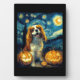 Cute Cavalier King Charles Spaniel Dog Halloween Jack O Lantern Pumpkin Face Starry Night Van Gogh Style