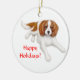 Original fine art design of a Cavalier King Charles Spaniel by designer Carolyn McFann of Two Purring Cats Studio on a quality and customisable holiday ornament for dog lovers.