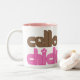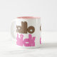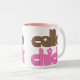 This cute cellist mug has pink and brown quote that says Cello Chick on a cool ceramic gift mug.