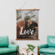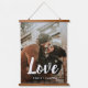 Modern photo tapestry featuring a simple design with the word "Love" in a cute chalk script along with your names over your favourite picture. This personalised wall art is great for a newly engaged couple or a newlywed couple for their first anniversary or first Christmas married.