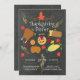 Unique & Cute Chalkboard Thanksgiving Dinner Invitation featuring thanksgiving food adorned with leaves & set on a popular black chalkboard background. Flip our popular Thanksgiving invitation over for a matching back