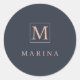 Cute Charcoal personalised initial name Classic Round Sticker