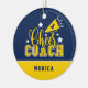 Cute Cheer Coach Personalised Royal Blue & Yellow Ceramic Ornament