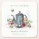 Cute Cheerful Roses Floral Teapot Bridal Shower Square Paper Coaster