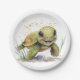 A very cute set of paper plates with an illustration of a smiling and cheerful tortoise.
