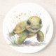 A very cute sandstone coaster with an illustration of a smiling and cheerful tortoise.