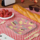 Cute and very cheesy Mouse family pattern, mum, dad, son and daughter each with their slice of cheese.