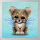 Cute Cheetah Cub with Fairy Wings on Blue Poster