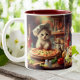 Cute chef Cat Making Pizza Personalised Name Two-Tone Coffee Mug