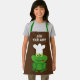 Cute chef frog cartoon custom kids cooking apron. Funny green frog with white cook's hat. Personalise with name of child. Fun small kitchen apron design for boy or girl. Bib style. Brown or custom colour background. Great for cooking, baking, arts and more.