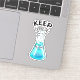 Cute chemistry sticker for women in science with a nerdy smiling flask character with glasses and the funny text Keep Bubbling.