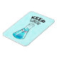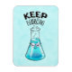Cute chemistry magnet for women in science with a nerdy smiling flask character with glasses and the funny text Keep Bubbling.
