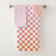 Cute Chequered Pink Orange Summer Bath Towel Set