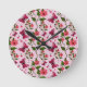 Cute Cherry Butterfly Pattern, Glossy Kawaii Fruit Round Clock