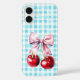 Cute Cherry Coquette Bow Blue Gingham Case-Mate iPhone Case