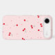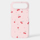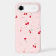 The design features bright red cherries scattered over a soft pastel pink background, giving it a girly, aesthetic, and fun vibe.