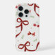 Add a touch of sweetness to your iPhone 15 with this cute cherry and red ribbon pattern phone case.