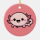 This delightful design features a whimsical axolotl, a neotenic salamander known for its regenerative abilities. The axolotl is illustrated in a charming, cartoonish style with a round body and an oversized head. Its soft pink skin is accented with darker pink highlights on the gills, which resemble delicate, leafy fronds. The creature’s wide, expressive eyes and broad smile give it an endearing and friendly appearance. Its short limbs and gently curling tail add to the playful and imaginative nature of the design. This adorable axolotl is perfect for those who love unique and cute aquatic creatures.