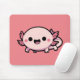 This delightful design features a whimsical axolotl, a neotenic salamander known for its regenerative abilities. The axolotl is illustrated in a charming, cartoonish style with a round body and an oversized head. Its soft pink skin is accented with darker pink highlights on the gills, which resemble delicate, leafy fronds. The creature’s wide, expressive eyes and broad smile give it an endearing and friendly appearance. Its short limbs and gently curling tail add to the playful and imaginative nature of the design. This adorable axolotl is perfect for those who love unique and cute aquatic creatures.