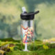 Personalised water bottle. Adorable cartoon chibi girl playing a harp.