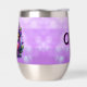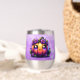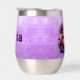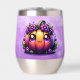 An adorable kawaii chibi orange pumpkin with purple flowers on it Happy Halloween personalised tumbler.
