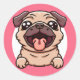 Cute Chibi Pug Busting Out Through Hole Classic Round Sticker