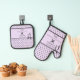 Cute Chic Girly Light Lilac and Black Polka Dot Oven Mitt & Pot Holder Set