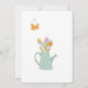 NewParkLane - Cute personalised Easter Brunch Invitation, with a little yellow chick with a lavender tea cup on its head, and a sage green tea cup spilling little pasel flowers. and a little orange butterfly. The backside has a cute pastel green tea pot with tulips, and a little orange butterfly.