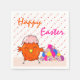 Cute Chick with Easter Eggs Heart Pattern Napkins. Cute chick with colourful Easter eggs and heart pattern. Cute Easter chick with cracked eggshell on the head.
