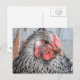 This is a very young Silver Laced Wyandotte pullet, or laying hen. This particular chicken has a gorgeous comb and bright red wattles that show nicely next to the beautiful white edged black feathers. Highly detailed, sharp, vibrant colour photograph shows the bird close up. Perfect for chicken farmers.