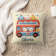 This personalised throw pillow features a classic red London double-decker bus, it's bustling with a flock of adorable, whimsical chickens. Some perch playfully on the iconic red exterior, while others peek out the open windows of the upper deck. Personalise it with your child's name for a truly unique gift that will be cherished for years to come.
