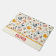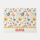 Personalised cute colourful chickens in the farm pattern on a light yellow background door mat.