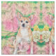 Cute Chihuahua Art Pink Green Dog Portrait Fabric