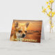 Chihuahua posing in front a desert scene customisable  greetings card. Text on front reads "Happy birthday!" and text inside reads "Hope you have a great day!" Text can be personalised.