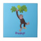 Cute chimpanzee in jungle hanging cartoon ceramic tile