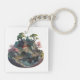 A very cute 3D Chinese fantasy landscape model complete with pavilions, lake, pathways, mountains, and trees square keychain.