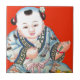 Cute Chinese Laughing Good Luck Buddha on red Ceramic Tile