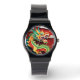 Cute Dragon (paper cutout and origami style) into traditional chinese houses and clouds with dark red background paper (image printed). Design on Silicone Strap Black watch with modern numbers. Perfect for Chinese and Vietnamese New Year of the Dragon 2024 or birthday (people born in Dragon Year). ---------- "The Dragon (simplified Chinese: 龙; traditional Chinese: 龍) is one of the 12-year cycle of animals which appear in the Chinese zodiac related to the Chinese calendar. The Year of the Dragon is associated with the Earthly Branch symbol 辰, pronounced chen. It has been proposed by one academic researcher that the Earthly Branch character may have been associated with scorpions; it may have symbolised the star Antares." People born within these date ranges can be said to have been born in the "Year of the Dragon", while also bearing the following elemental sign: 22 January 1928 - 9 February 1929 = Earth Dragon,